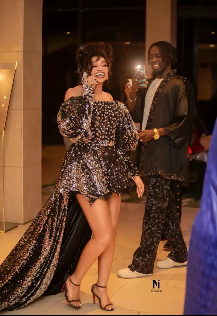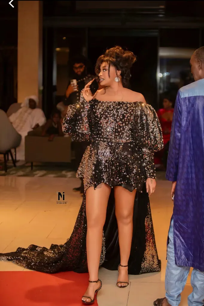 Selon les informations rapportées par Kawtef, Kiné Badiane est apparue dans une tenue qualifiée de glamour et audacieuse. Conformément à son image publique, son style a suscité de vives réactions et a captivé les regards de l’assistance durant cet événement prestigieux.