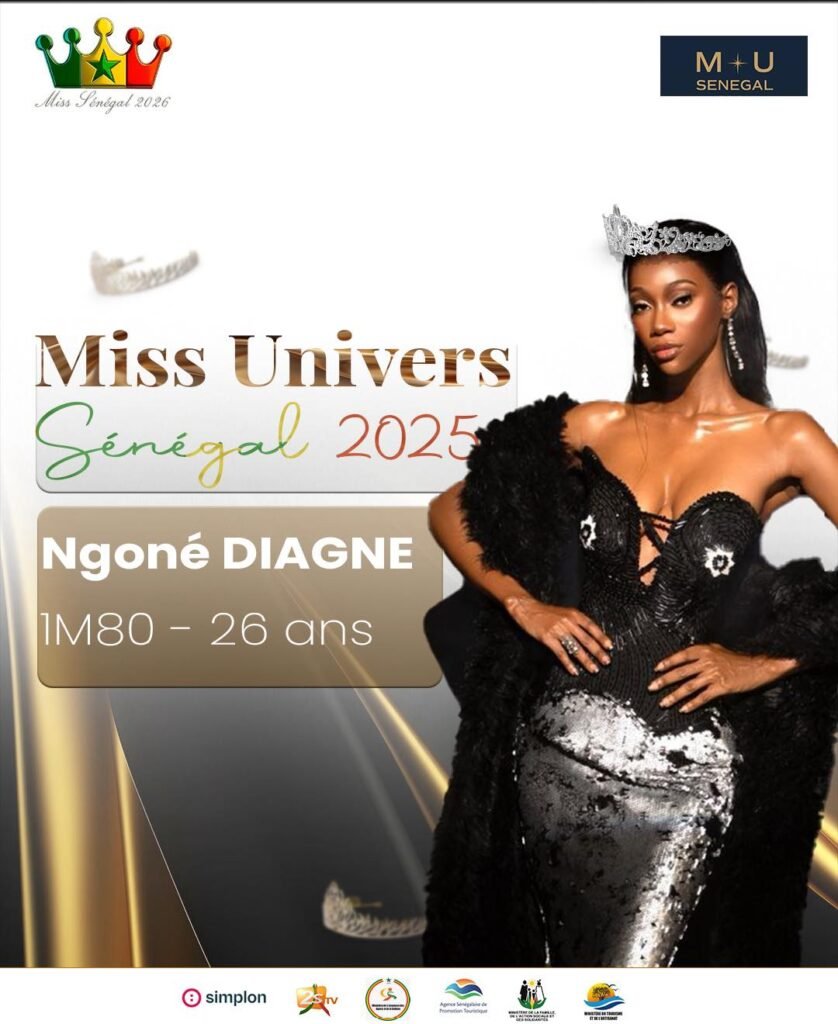 Ndeye Ngone Diagne, élue Miss Univers Sénégal 2025. La jeune femme de 26 ans va défendre les couleurs du Sénégal en Thaïlande grâce à sa beauté et sa prestance. Nouvelle ambassadrice de la beauté sénégalaise, Ndeye Ngone Diagne s’est imposée devant Aïda Diop et Fatoumata Diop candidates lors de l’élection.