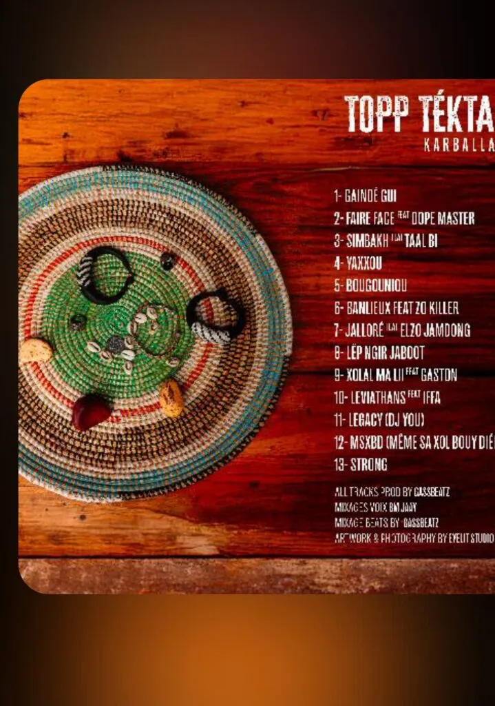 Le rappeur sénégalais Karballah est de retour sur la scène musicale avec un nouvel album intitulé « Topp Téktal ». Composé de 14 titres, cet opus est le fruit de collaborations avec plusieurs artistes, dont Dope Master, Taal Bi, Zo Killeuh, Elzo Jamdong, Gaston, Iffa, DJ You et Mollah Morgun. L’album, entièrement produit par GassBeatz et mixé par BM Jaay, aborde des thèmes variés, allant de l’engagement social au vécu des banlieues, en passant par une ouverture musicale affirmée.